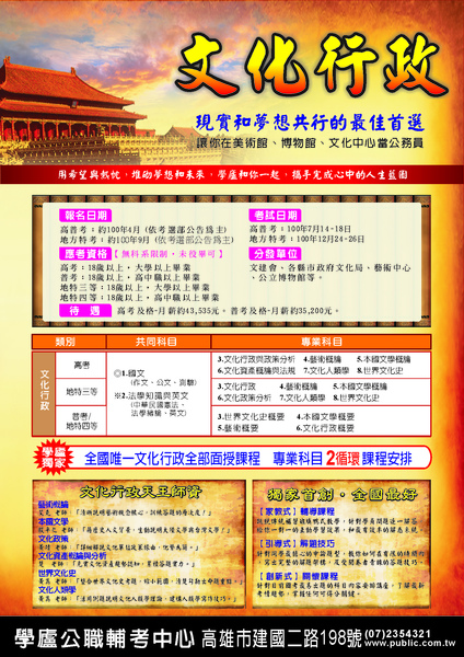 高雄學廬 文化行政 & 教育行政 全面授的課程 專業師資功力傳授 面對國考信心滿滿