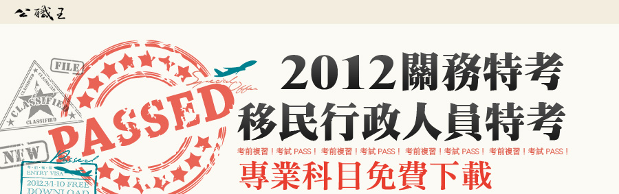 2012關務特考移民行政人員特考專業科目免費下載