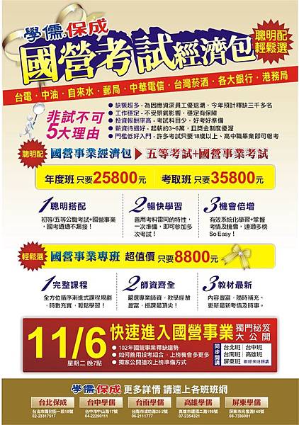 當天來班聽講 即贈國營事業手冊乙