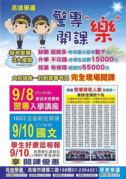 103年警專9/10(二)全面新班開課!歡迎試聽!