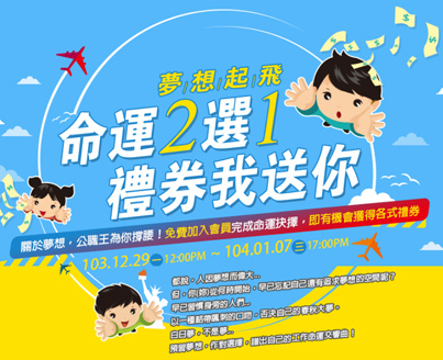 即日起至2015/1/7(三)17:00前完成簡單的命運抉擇,