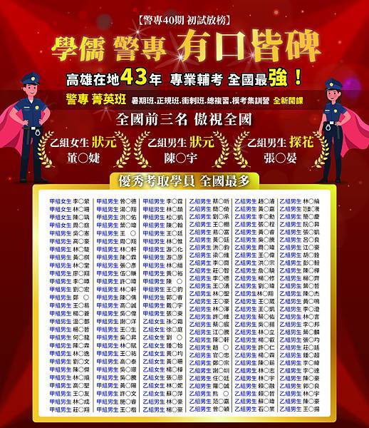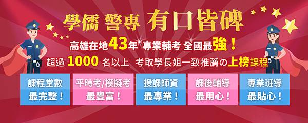 從警或許是很多人的夢想,不論是因為任何的原因只要決定了就勇敢並且大步的往前走,每天都為自己做一點努力,補習的這段時間可能很辛苦,但只要有任何問題,班導也都很樂意幫忙我們解決,只要自己不放棄,到了考上的那一天再回頭來看,就會發現這一切真的都很值得,也祝每一位有夢想和目標的學員努力都能如願以償。