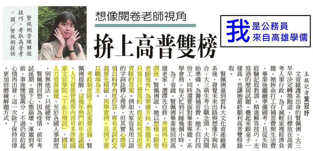 (三)現行考銓制度:考銓制度是跟人事行政最相關的業務,我在這一科花了很多心力,除了重要法條一定要熟記外,近年的年金議題、人力資源管理等內容,可以去看T&D飛訊、國家人力資源論壇,在申論作答上增加內容的深度與獨特性。